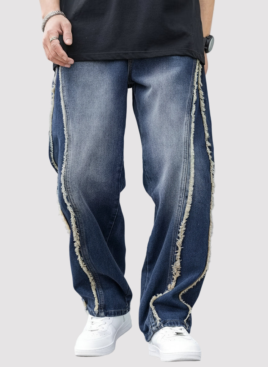Vaqueros de Hombre de Pierna Ancha con Costuras Desflecadas